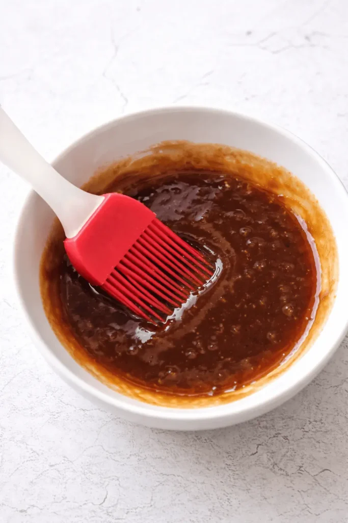 - Haut mit Zahnstochern einstechen, Honig-Hoisin-Mischung auftragen, weitere 20 Minuten garen. Fett erneut abgießen.