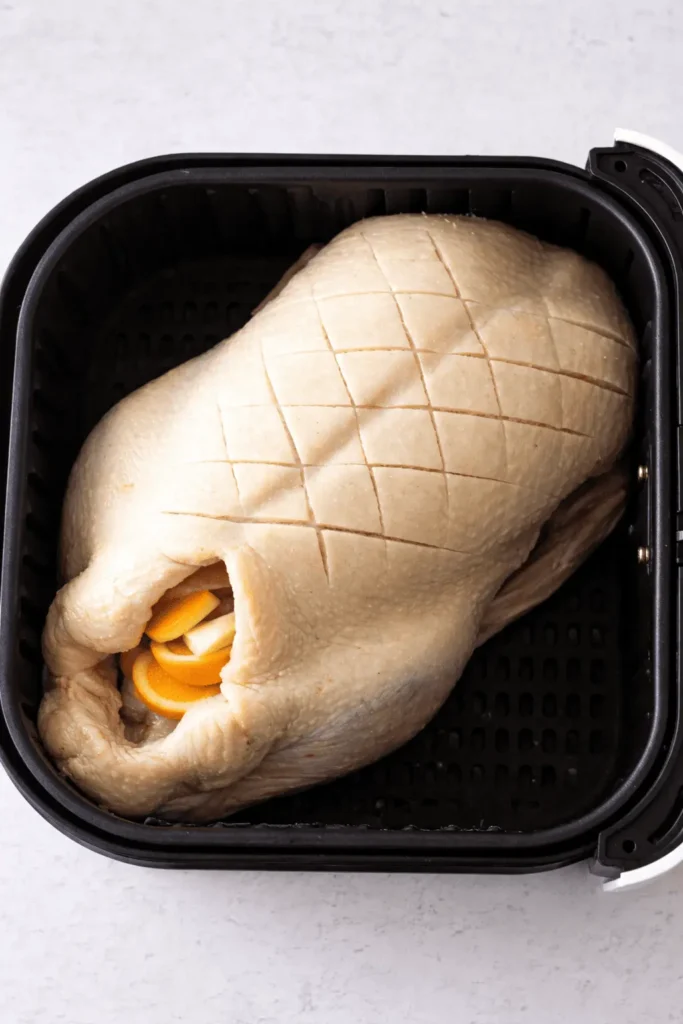- Auftauen: Achte darauf, dass die Ente vollständig aufgetaut ist, bevor sie in den Airfryer kommt. So wird sie gleichmäßig gegart und die Haut wird extra knusprig.