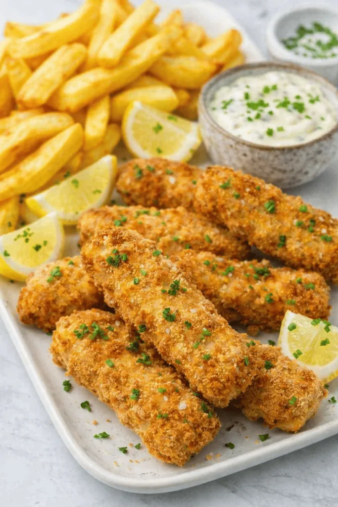 Dieses Rezept zeigt, wie du Fischstäbchen im Airfryer schnell und einfach zubereitest. Außen knusprig, innen saftig – ideal für Kinder, Familienessen oder einen schnellen Snack. Mit wenig Fett und tollen Beilagen wie Pommes, Kartoffelpüree oder Gurkensalat.